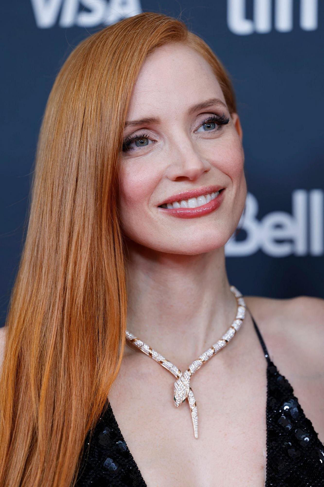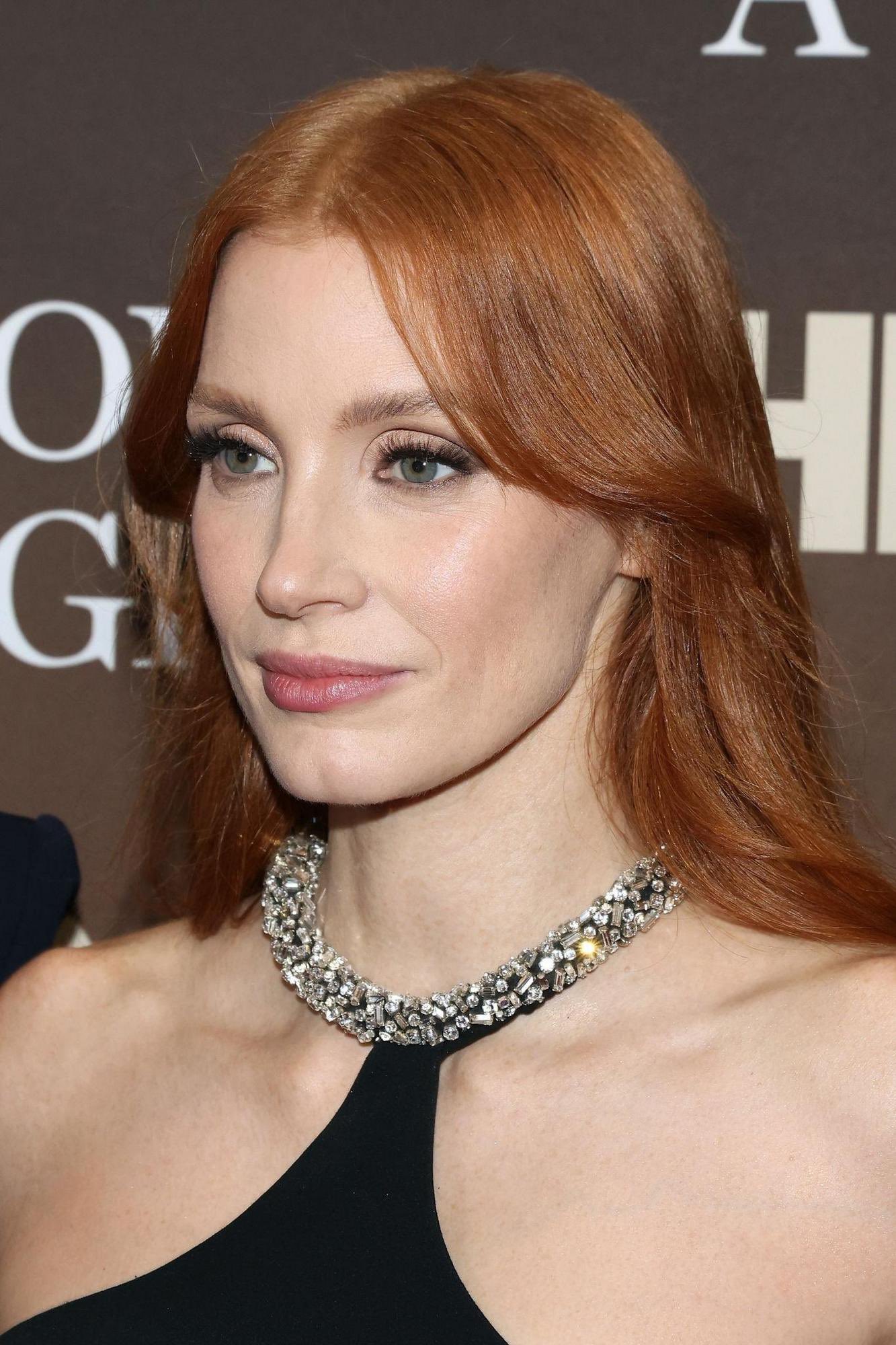 Chastain founded Freckle Films to champion diverse stories and women’s roles, producing hits like The Good Nurse (2022) and upcoming projects including Dreams (2025/2026 release with Rupert Friend), His & Hers (2026), pre-production titles like This is Pleasure, The Dealer, Off Weeks, and the ensemble crime thriller My Darling California (2026 filming with Josh Brolin, Chris Pine, and others). Philanthropically, she advocates for women’s rights, gender equality, mental health (supporting To Write Love on Her Arms), anti-bullying, and humanitarian causes, while opposing body-shaming and promoting self-acceptance. Known for her striking, magnetic presence—fiery signature red hair (naturally ginger, often styled in elegant waves or sleek looks), piercing light blue-green eyes that convey intensity and depth, pale luminous skin, and poised, elegant figure—she commands red carpets in bold gowns (halter, sequined, or ruched designs in vibrant hues), exuding confidence and timeless sophistication. Chastain remains a dedicated, versatile icon inspiring through talent, advocacy, and commitment to meaningful storytelling.