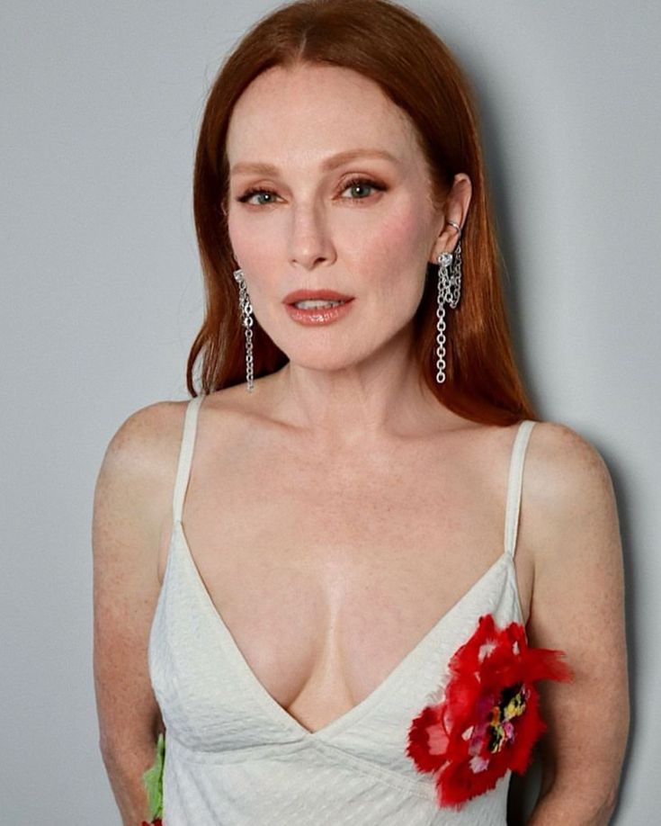 Moore has continued delivering standout performances in recent years, including May December (2023), The Room Next Door (2024), the Apple TV+ thriller Echo Valley (2025) opposite Sydney Sweeney, the miniseries Sirens (2025), and upcoming projects like the untitled Jesse Eisenberg musical comedy (in post-production) and other films in development. She has also authored a popular children’s book series (Freckleface Strawberry) and serves as a producer on select projects. Philanthropically, she is a longtime advocate for gun violence prevention (as chair of Everytown’s Creative Council), Alzheimer’s research and awareness (inspired by Still Alice), children’s causes (Save the Children, Elizabeth Glaser Pediatric AIDS Foundation), women’s health, and education. Known for her striking, elegant presence—flaming red hair often styled in soft waves or sleek looks, expressive blue-green eyes, fair luminous skin, and poised, sophisticated figure—she commands attention on red carpets in tailored gowns, classic silhouettes, and minimalist high-fashion ensembles that highlight her refined, timeless beauty. Moore remains a dedicated, versatile icon inspiring through her depth, longevity, and commitment to meaningful storytelling and social causes.
